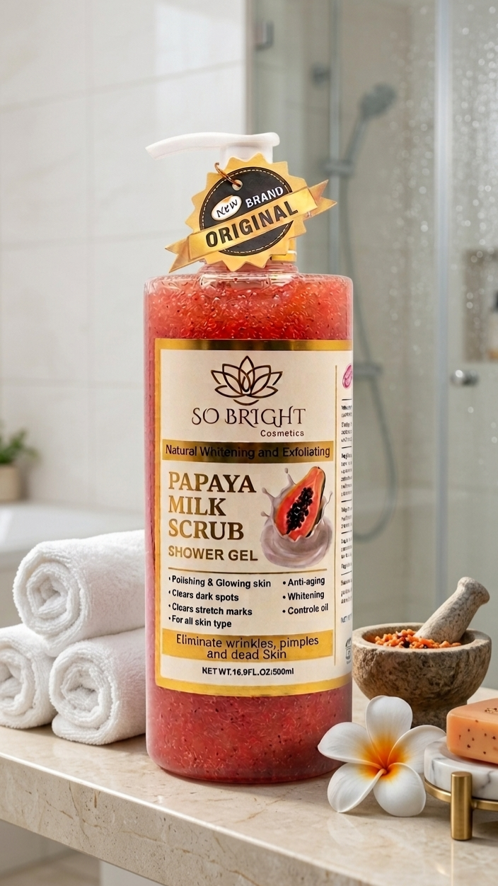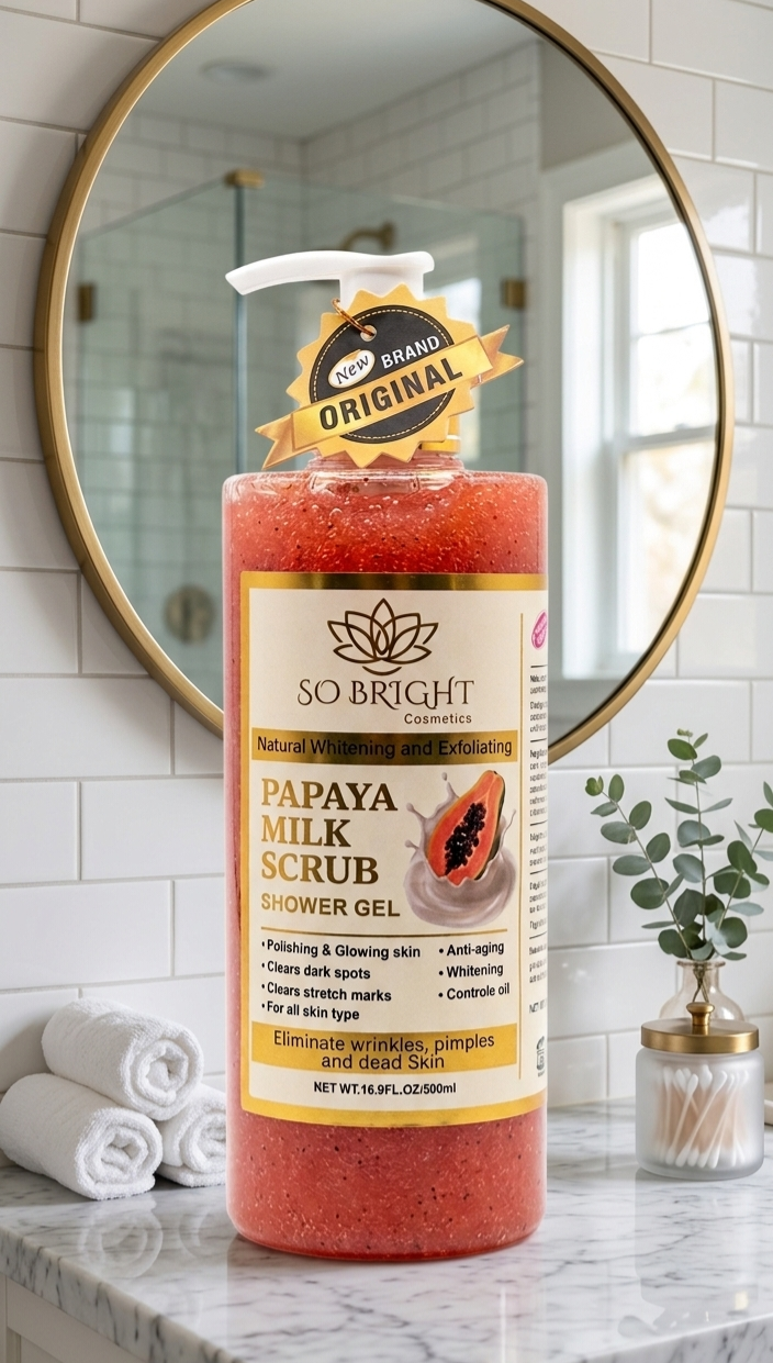This Papaya Milk Scrub Shower Gel combines the brightening power of natural enzymes with the deep-cleansing benefits of an exfoliant. Designed to transform dull skin, this formula works to reveal a smoother, more radiant complexion with every wash.